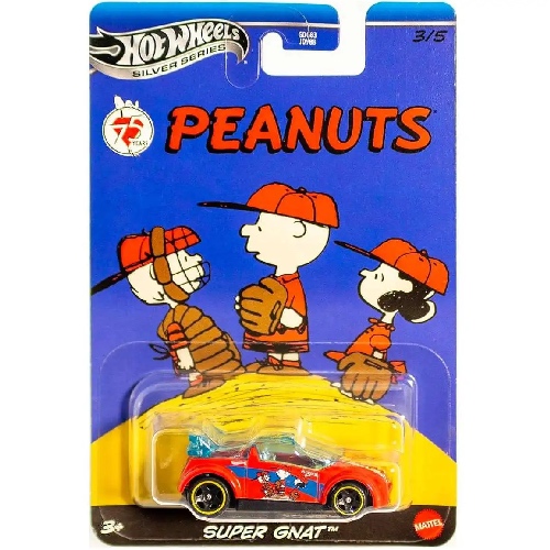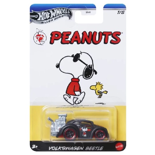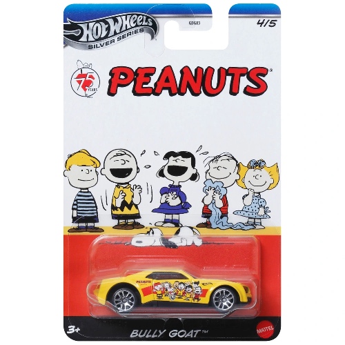 De Hot Wheels® Peanuts thema-auto’s leveren een verscheidenheid aan replica’s voorzien van een leuke Peanuts art. Zet de auto’s tentoon. Elk voertuig op schaal 1:64 heeft een elite deco-uitvoering om zowel fans als Hot Wheels®-verzamelaars aan te spreken – ze zullen ze allemaal willen verzamelen. EAN 0194735267576