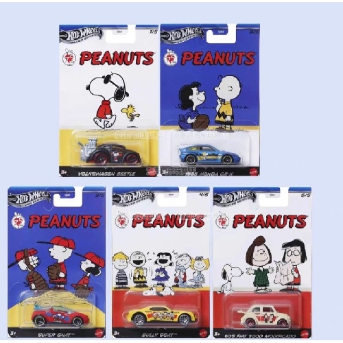 De Hot Wheels® Peanuts thema-auto’s leveren een verscheidenheid aan replica’s voorzien van een leuke Peanuts art. Zet de auto’s tentoon. Elk voertuig op schaal 1:64 heeft een elite deco-uitvoering om zowel fans als Hot Wheels®-verzamelaars aan te spreken – ze zullen ze allemaal willen verzamelen. EAN 0194735267583