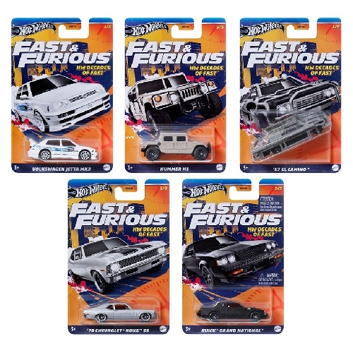 De Hot Wheels® Fast & Furious™ themaauto’s leveren een verscheidenheid aan replica’s geïnspireerd door en gezien in de high-speed filmfranchise. Herbeleef favoriete racemomenten of zet de auto’s tentoon. Elk voertuig op schaal 1:64 heeft een elite deco-uitvoering om zowel fans als Hot Wheels®-verzamelaars aan te spreken – ze zullen ze allemaal willen verzamelen. EAN 194735187324