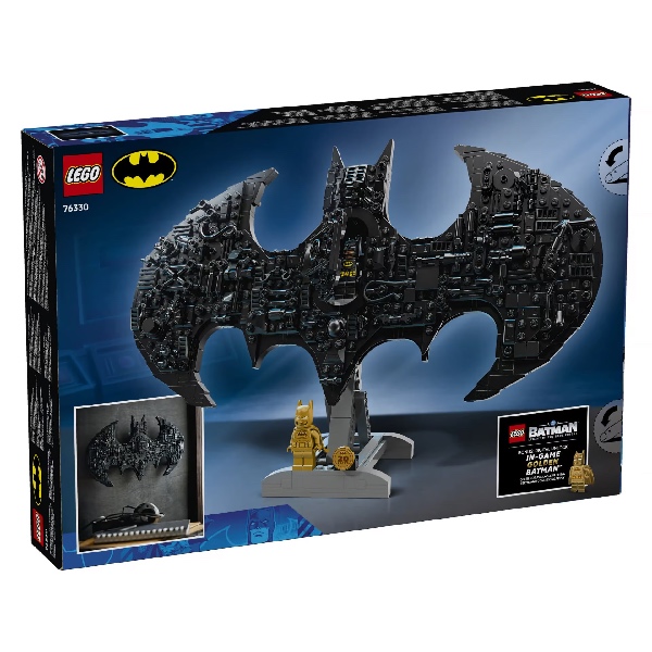 Plaats het Batman signaal op de standaard of bevestig het aan de muur met de ingebouwde steun. Het model is versierd met bekende voorwerpen uit het DC Universum die je kunt verwijderen en verplaatsen, waaronder Batarangs™ en de hamer van Harley Quinn™. De set bevat ook een goudkleurige Batman minifiguur , een goudkleurige jubileummunt en een traditionele Batman minifiguur. Die in een luikje in het midden van het model kan worden geplaatst – ontworpen om op de kluisdeur van de Batcave™ te lijken.