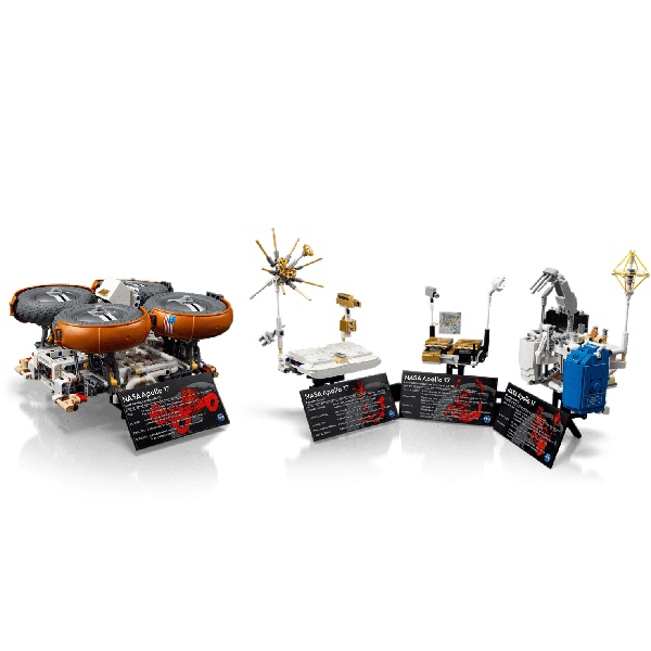 Vouw de NASA rover open, voeg de apparatuur toe en test de besturing en vering terwijl je je voorstelt hoe het zou zijn om op de maan te lopen en monsters te verzamelen. Bekijk de batterij van het model met verwarmings- en koelelementen en de tv-camera met antennes. Verken de communicatie-eenheid, probeer gereedschappen zoals een schop en drilboor uit en vind LEGO maanstenen. De set bevat ook het Traverse Gravimeter Experiment van Apollo 17, plus een eerbetoon aan Big Muley – het grootste steenmonster dat via het Apolloprogramma naar de aarde is gebracht.