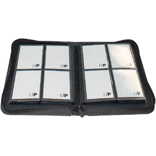 Bewaar je kaarten veilig met de Ultra Pro Vivid 4-Pocket Zippered Binder Zwart met ritssluiting. Deze stijlvolle PRO-Binder is ideaal voor het verzamelen en organiseren van speelsets van je favoriete ruilkaarten. De map heeft een gewatteerde kunstleren omslag met een bijpassende ritssluiting en handig treklipje voor extra gebruiksgemak. Binnenin vind je twintig stevige pagina’s met zijlaadvakken, geschikt voor maximaal 160 kaarten in Deck Protector-hoezen. De zwarte, wrijvingsarme achterkant geeft je kaarten een strak, ingelijst uiterlijk en houdt ze netjes op hun plek. Gemaakt van zuurvrij en PVC-vrij materiaal dat langdurige bescherming biedt tegen slijtage, stof en verkleuring. Perfect voor verzamelaars die op zoek zijn naar een combinatie van veiligheid, stijl en gebruiksgemak.